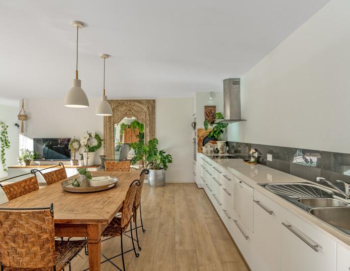 A tranquil oasis, the property exudes vacation vibes, all from with the comfort of home, with two levels of luxurious living spaces, and sumptuous accommodation. Open-plan, light-filled living on the ground level spills out to a tranquil, al fresco area, creating a seamless integration of indoor and outdoor spaces.