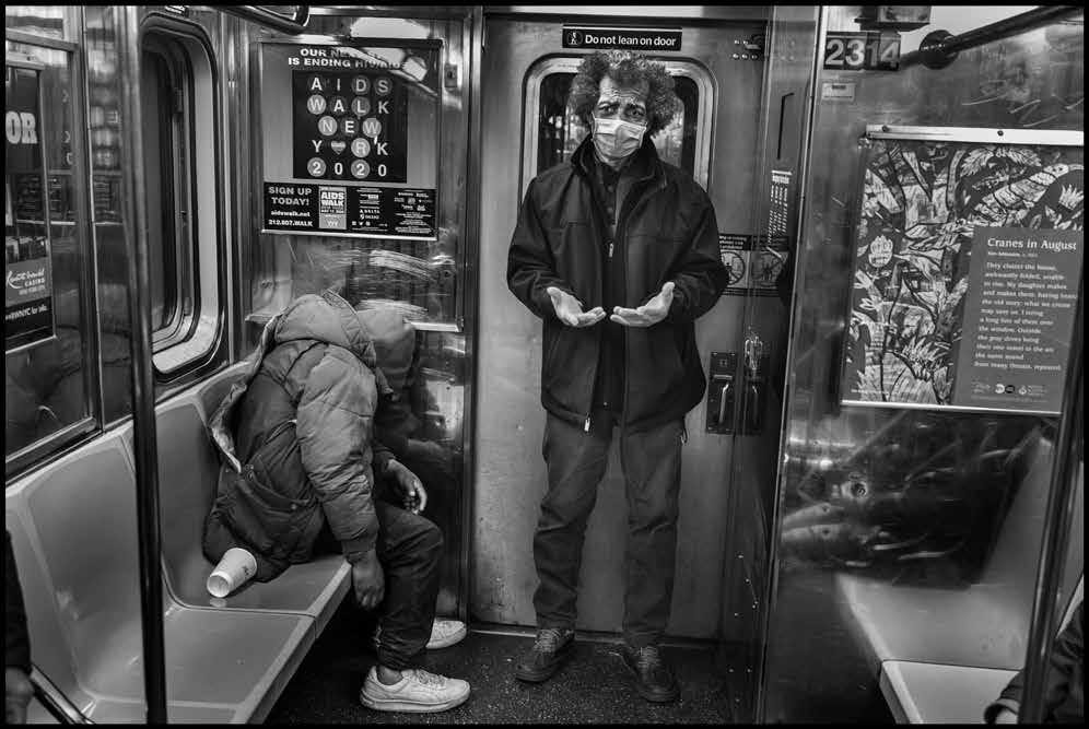 New York is now the epicenter of the coronavirus crisis in the world. The hearts of this city continue to beat, and there are so many moving stories of courage and life going on and how people are coping during this lockdown. While wearing mask and gloves and keeping always a careful 6-foot distance from all with whom I come in contact, I think it is essential to share with the world the stories of this moment through photojournalism. I also return each day to where I live, alone. Yesterday I went out and again walked north. I came across Clifford standing at a bus stop hoping to receive some money to help him eat at this time. At the Happy Warrior Playground on the Upper West Side, 6-year-old Taji was shooting baskets—at a safe distance from everyone else—with his mother, Latoine. She told me Taji really misses school and Taji told me he was going to grow up to be the next Kobe Bryant. He seemed already like a champion to me. Loren was walking with her dog, Molly, and Joe looked through the window of a famous deli, Barney Greengrass—The Sturgeon King. Jacob, a nurse at Sloan Kettering, jumped rope at a safe distance. Rosario from Guatemala waited for a bus, and Rummy returned home, basketball in hand, from shooting baskets alone in a park. At the 125th Street Harlem train station, a mainstay station for many people working in the city who commute in each day, I came across several of New York’s heroes of this moment: Haymar, 29, a medical student from Myanmar who works in a Harlem medical clinic; C., a doctor, on his way home; and Linda, an oncology nurse who works at Mount Sinai. I will never forget the night of 9/11, when I was in the rubble of ground zero and a nurse walked up to me at 3 am and offered me her mask. I couldn’t accept it but will never forget her selfless kindness and gesture. Yesterday, after speaking to Linda, the nurse, for a while about how this moment is affecting her, she reached into her bag and offered me an extra mask for future days.