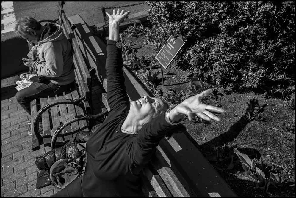 Over the past two days, I encountered Ruta, from Eritrea; Madeleine, 86; and Frankie, who brought his grandmother from St. Denis to see the Arc de Triomphe for the first time since the lockdown; Mamadou and Miriam, both from Mali, who have been together for three years—and Miriam spent her first three months in France confined; Monsieur Henri, who told me he comes from a family of warriors and has withstood this period well; Patricia, who is 70 and has been homeless now for one month and told me as we parted ways, “Peter, protect your heart—life can be violent”; Akee, from Afghanistan jumping rope in front of the Eiffel Tower; Zoé enjoying a Saturday morning café at Café de Flore; Sarah, from Brazzaville, who quit her job during the lockdown and has started a new T-shirt enterprise; Ditl, from Moldova, singing in the métro for money; Laura and Loup kissing after a magical reunion after first being together twelve years ago; Nadia, who is homeless and sleeps in the doorway of one of the most chic shopping streets in the world, Faubourg St. Honoré; Irina and Misha, from Ukraine, figuratively teaching their 1-year-old son how to fly in front of the Eiffel Tower; Julien and H., in love on a street in Le Marais; and Jasmine, from Brazil, who has just succeeded in entering a prestigious Paris music school, standing on the Champs-Elysées.