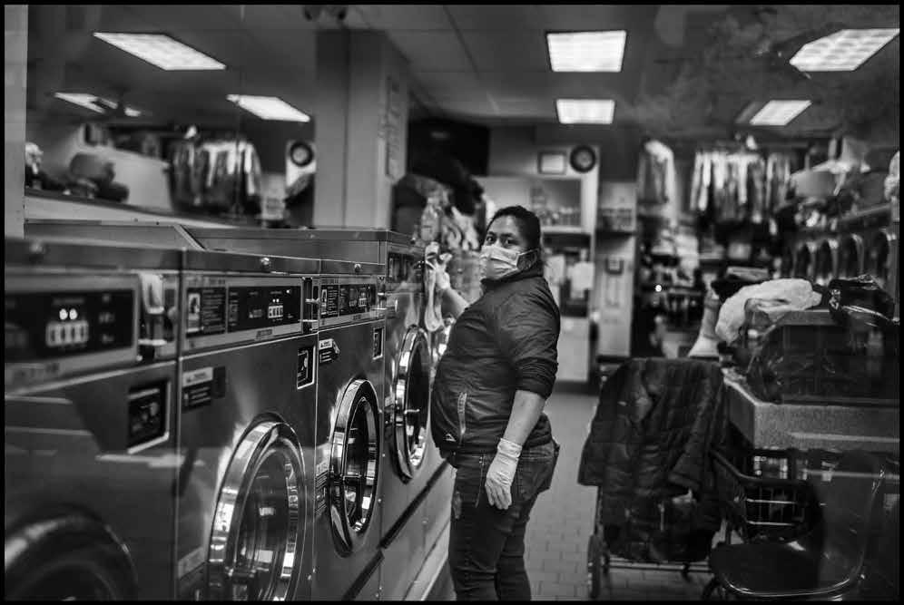 It rained coronavirus cats and dogs today in New York City—both figuratively and literally. New York is ground zero of the pandemic in the U.S. Late afternoon, I went out and walked north on the Upper West Side. Within a few hours, I came across so much of the reality of this moment—and of the melting pot of New York—and the courageous people who perform essential jobs to keep life going for so many. I encountered a gentleman who was out for groceries, and as I photographed him, he looked up at the sky and declared, “It is raining, but it is a beautiful day!” I came across Natalia, from Odessa in the Ukraine, standing alone on the sidewalk at 83rd Street. A postal worker, delivering mail without a mask, Jason, told me with a smile, “I am not scared.” A bus driver opened his door and welcomed a photograph with a smile before taking off at a light. I walked past a laundromat where a woman working with a mask went about her chores in front of a washing machine, while Diallo, a young woman from Guinée, sat waiting for her wash to finish. A young man with a baseball hat prepared to take out the trash for a building on the Upper West Side. A doorman stood behind revolving doors with his mask on, proudly wearing his doorman’s uniform. Finally, as I arrived at 96th Street, I took a cab and asked Mohammed, a driver from Bangladesh, how he felt, and he told me, “I am scared to death.” I was very careful to keep a distance from all I photographed and felt somewhat comforted by the heavy rain. My life must go on, and I will be careful. I return to my home alone, and I am very careful with gloves and mask and immediately put the clothes in the laundry and jump in the shower, and I wash my hands often. But both my heart, and these times, need to carefully bear witness to the humanity of this moment— and, as carefully as possible, to indelibly convey the courage and hearts of so