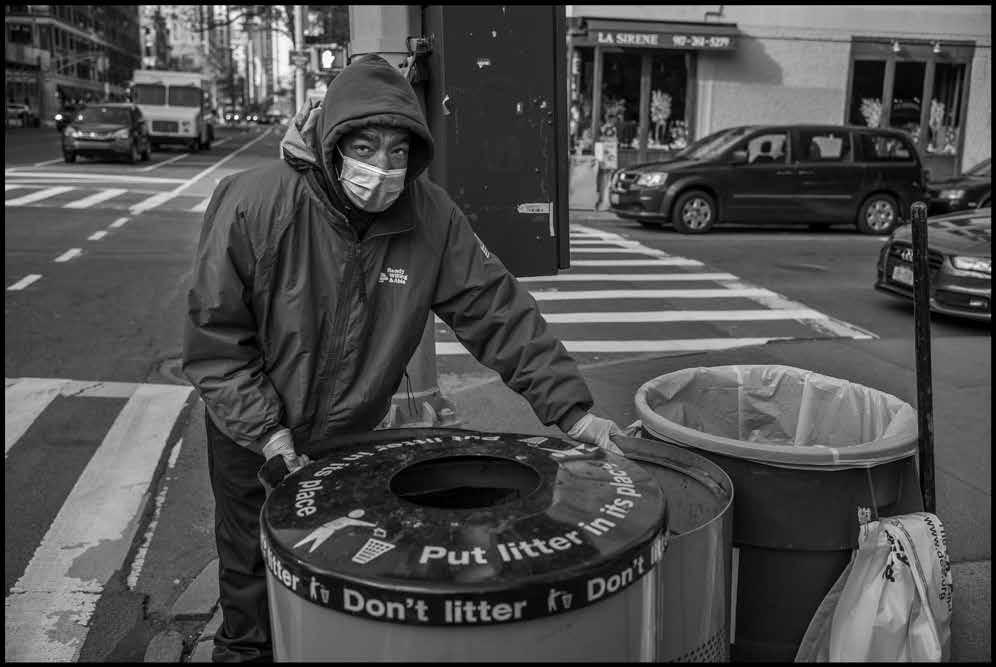 I wonder if many others are going through what I am feeling today. My emotions often are like a roller coaster. Most of the time, particularly when I am sharing the visual stories of so many who are true heroes in this historic moment, I am uplifted and their example gives me courage and hope. Then there are moments when so much of this new reality and its unknowability, how it is changing our world in known and unknown ways, challenges the spirit. But, when I finish my day walking and encounter Lesley, a 46-yearold subway worker, standing with a big, wide smile—and who with pride tells me that she has just come from disinfecting the 23rd Street subway stop as part of her job—I say to myself, if Lesley can be this strong and generous and courageous, I certainly owe it to her and everyone else to do the same. There is only one New York—a special, strong, amazing city of wonderful people.