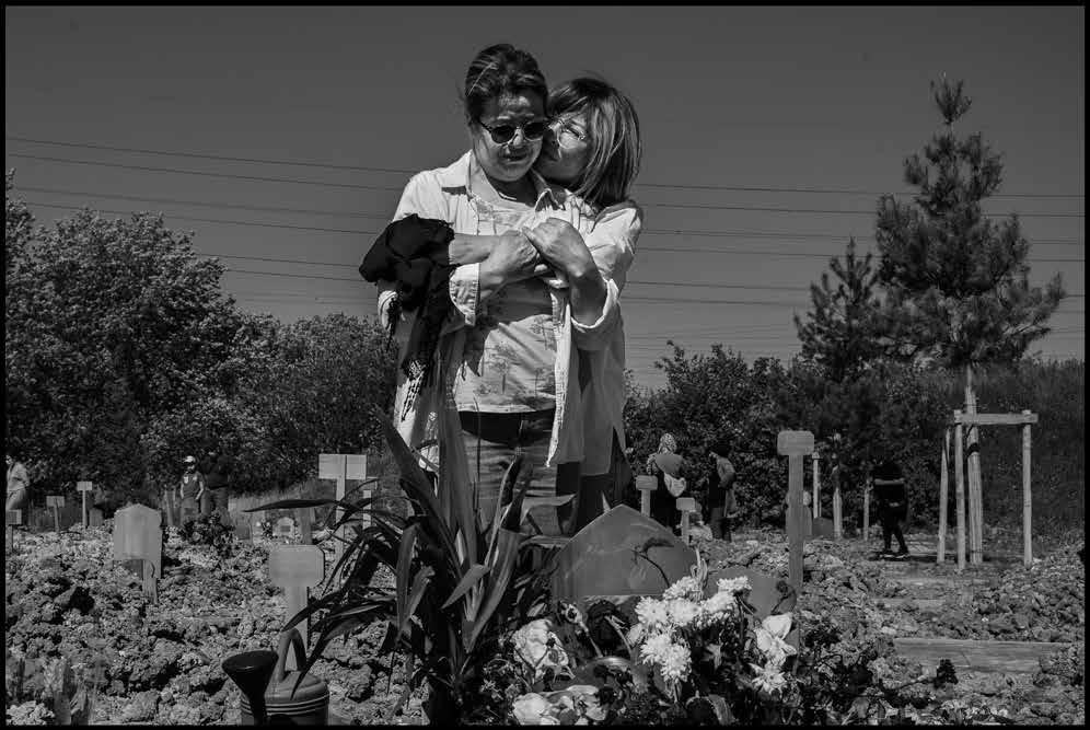 above: Hayat and Tidia, mother and daughter, mourn the death of a husband and father, Arezki Ammi, a victim of Covid-19, St. Denis. May 29. Paris diary 8.