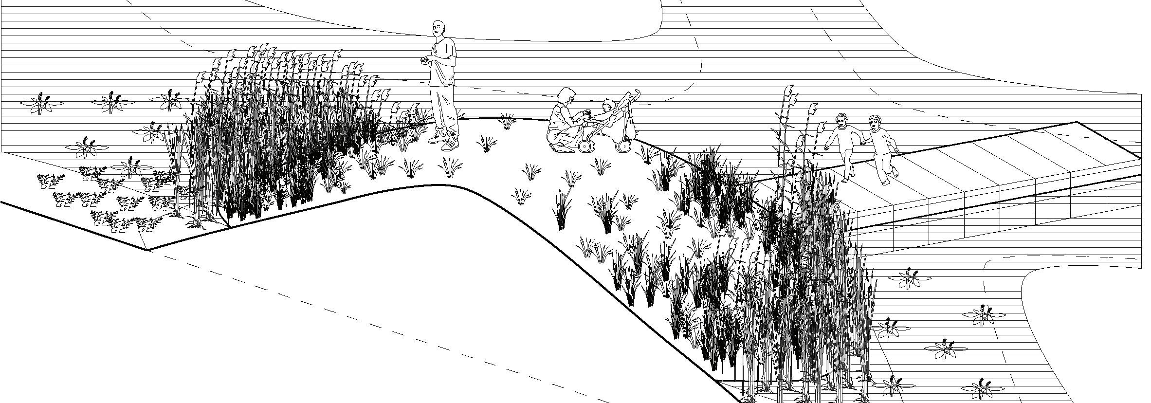A gradual ascent leads visitors towards observation decks, seamlessly blending with the boardwalk, drawing wanderers closer to the heart of the marshland. "Through the Reeds" intertwines past, present, and future, weaving human-nature threads, offering a sanctuary for reflection and connection with the unfolding chapters of the natural world.