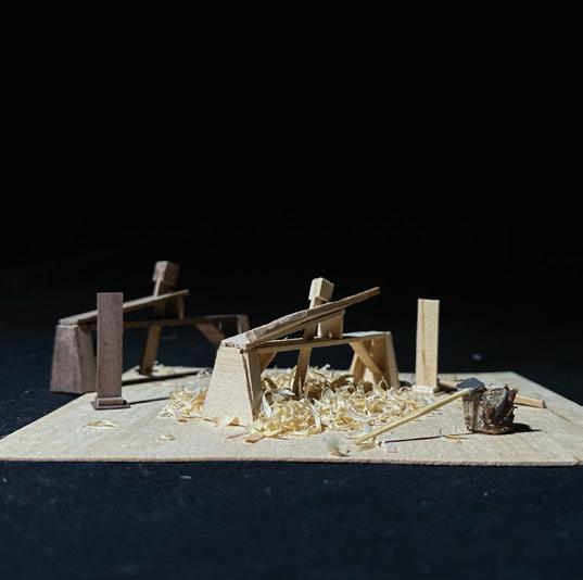 An architectural interpretation of the work by indigenous artist Ursula Johnson, An Architectural Model, Site-less. 2024