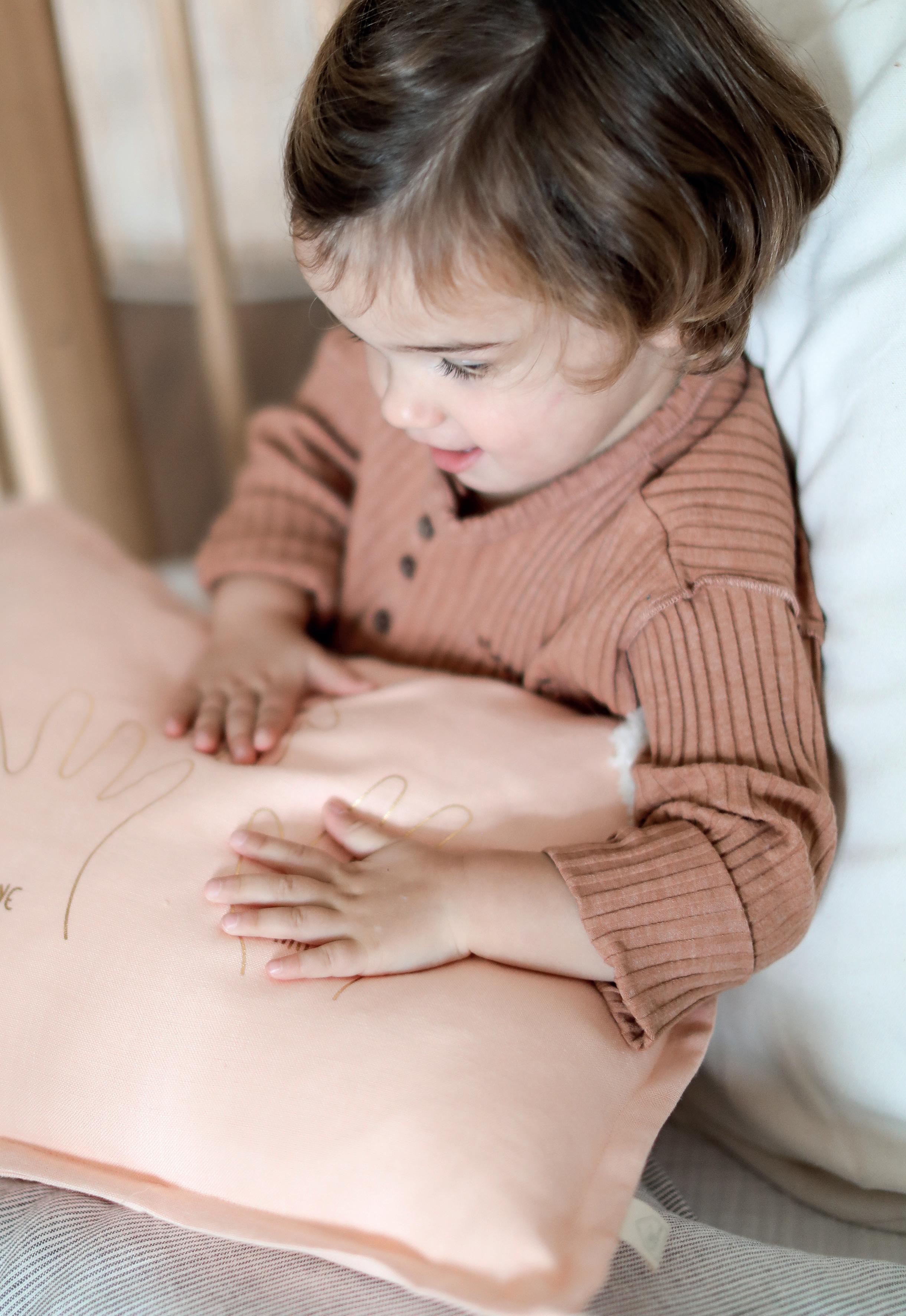 C’est le petit rigolo de la bande de coussins ! Il apporte une touche d’originalité à une chambre d’enfant.
