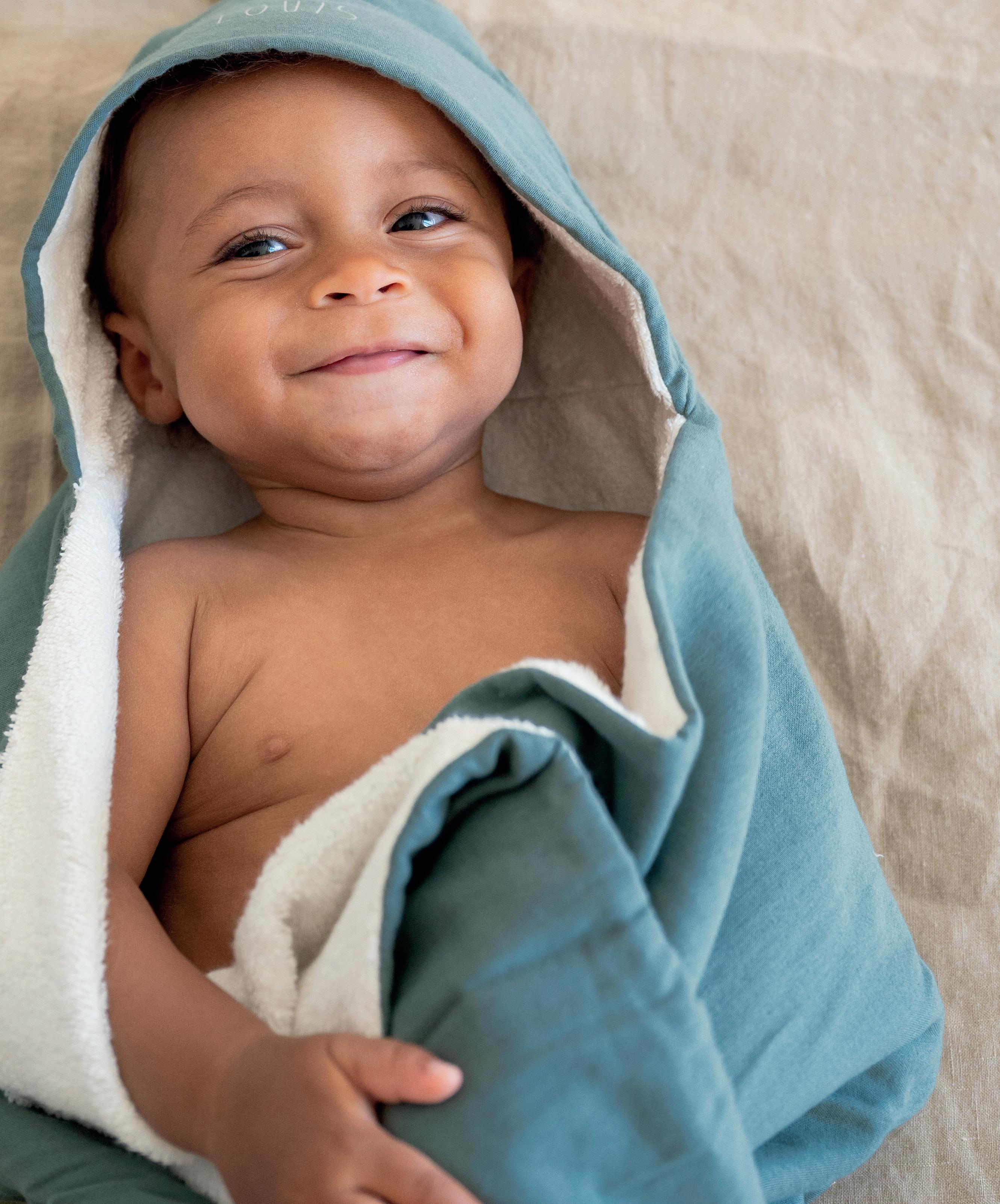 On rêverait tous d’être un bébé pour s’emmitoufler dans cette cape de bain, non ? Un belle idée pour le noël des tout-petits... idéale de 0 à 3 ans Dimensions : 84 x 64 cm Prix : 49 €