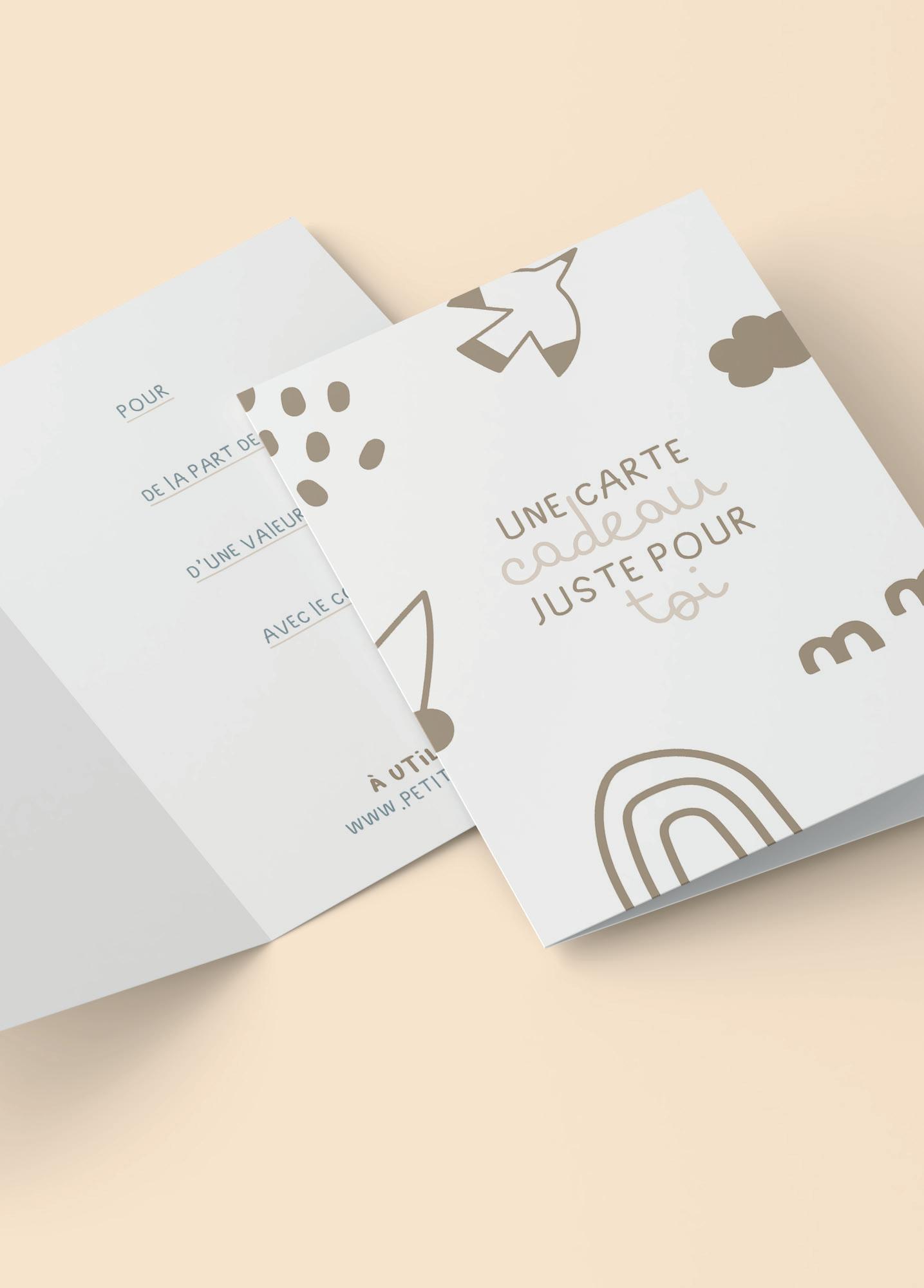 Vous hésitez ? Vous ne savez pas quelle est la couleur de sa chambre ou si il a déjà reçu une trousse de toilette ? Offrez notre carte cadeau ou notre e-carte cadeau, vous serez sûr de faire plaisir ! montant au choix