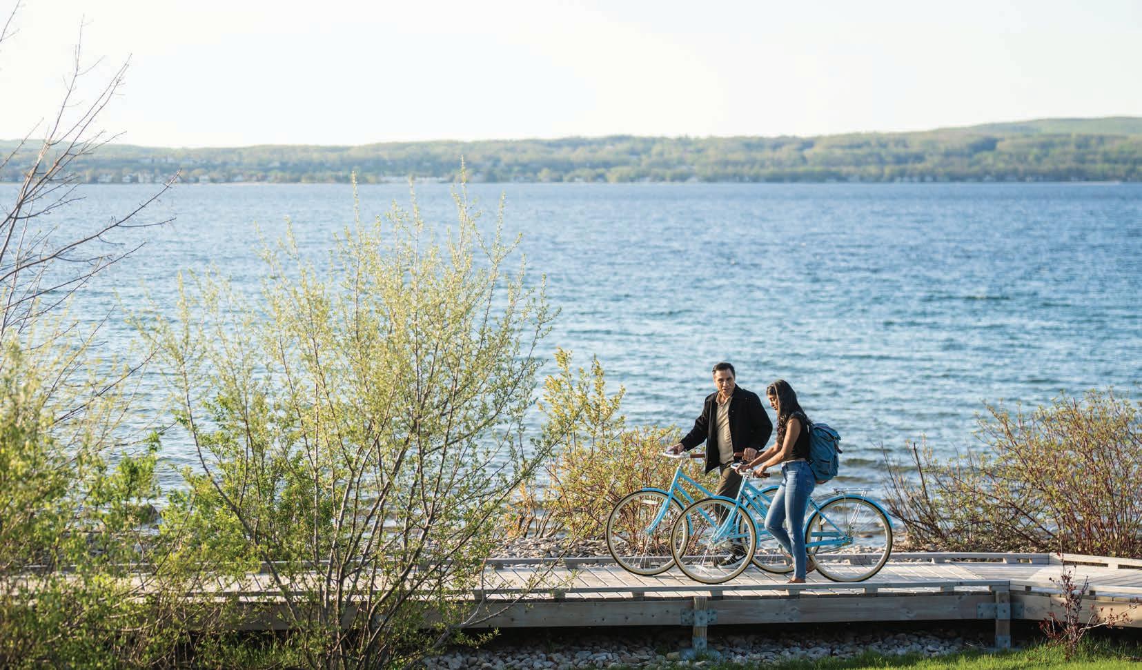 Expertly maintained by the Top of Michigan Trails Council, the Little Traverse Wheelway is approximately 26 miles of paved trail. Much of this scenic trail runs along the Lake Michigan shoreline from Charlevoix to Harbor Springs, passing through Bay Harbor, Petoskey, and Bay View along the way.