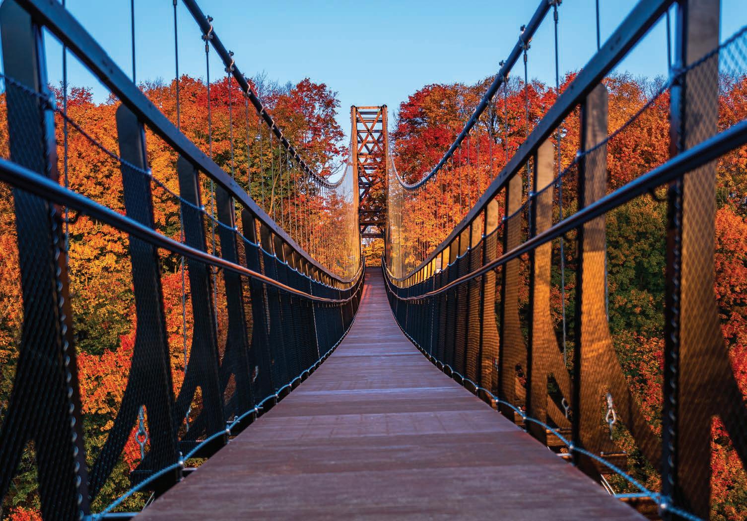 SkyBridge Michigan at Boyne Mountain Resort in Boyne Falls is the world’s longest timber-towered suspension bridge, and continues to be one of the Petoskey Area’s premier attractions for visitors since its opening in 2022. Open year-round, SkyBridge is a pedestrian bridge suspended 100+ feet in the air at the summit of Boyne Mountain with unparalleled views of the Boyne Valley.