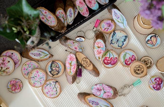 Die Kreativen wiederum profitieren von dem Verkaufserlös – so wie beispielsweise Elmira Wilms, die ihre „Scheibchen“-Kunst und Mirakelfänger sowohl auf Künstlermärkten als auch über ihren Webshop anbietet (S. 30).