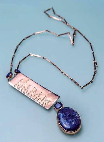 4. Beispiel für recycelten Schmuck: Spezialanfertigung für eine Kundin, die die Edelsteine (Lapis Lazuli aus Afghanistan) lieferte und sich Poesie dazu wünschte.Die Kette ist aus 18ct Rotgold.