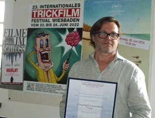 Den Kulturamtspreis der LH Wiesbaden hatte Amtsleiter Jörg Uwe Funk persönlich überreicht an Christoph Lauenstein, Studio Lauenstein & Lauenstein Hamburg. Mit seinem Bruder Wolfgang 1989 Oscarpreisträger geworden, zeigte der sympathisch Bodenständige seinen Oscar-Film „Balance“ außer Konkurrenz – und heimste für seinen neuen Puppen-Trickfilm „People in Motion“ hoch verdient noch den Publikumspreis ein.