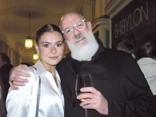 Otto Katzameier, als stimmgewaltiger Bassbariton und vielschichtig agierender „Tod“ im schwarzgefiederten Kostüm umjubelt, feiert die gelungene „Babylon“-Premiere mit Tänzerin Carla Peters in der Theaterkolonnade.
