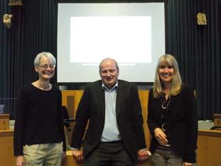 Zur Eröffnung der großen Landeschau „Der Untergang des römischen Reiches“ befasste sich Prof. Dr. Marcus Trier, Direktor des RömischGermanischen Museums Köln in seinem anschaulichen Vortrag mit der Römischen Nachbarprovinz Colonia im 4. und 5. Jahrhundert n. Chr. und wird auf dem Bild von Kuratorin Dr. Ellen Riemer und Landesmuseumsdirektorin Dr. Birgit Heide flankiert.