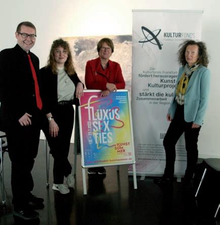 FluxUs - Kunst als Haltung, Denk- und Lebensweise. Kulturdezernent Axel Imholz, Projektleiterin Jana Dennhard ,Kulturfonds-Chefin Karin Wolff &Kunstreferentin Monique Behr stellen im Kunsthaus den Kunstsommer 2024 vor: „FLUXUS S(I)EX TIES“, Foto: Gesine Werner