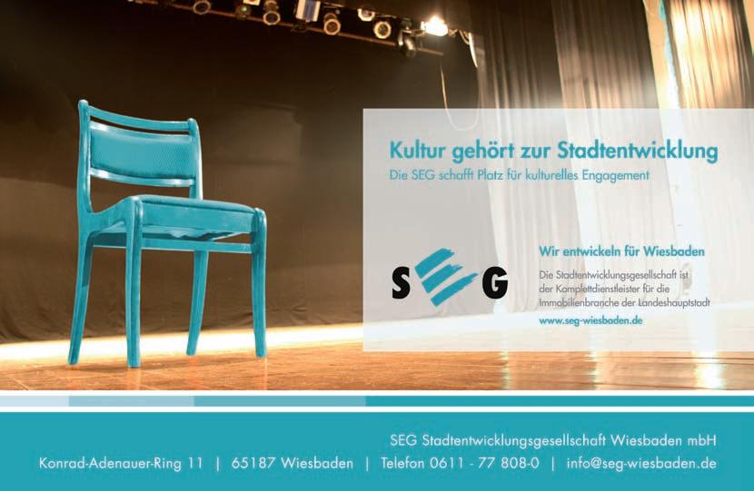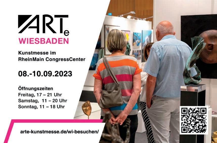 Aktuelle Kunst sowohl von etablierten Künstlern als auch von Newcomern und frischen Talenten zeigen die Kunstmessen ARTe in Wiesbaden (S. 12) und die Discovery Art Fair in Frankfurt (S. 30). Auch „Tatorte Kunst“ ist wieder am Start. Ende Oktober führt der Kunstrundgang durch zahlreiche Ateliers, Schauräume, Aktions- und Werkstätten in den Vierteln Rheingauviertel und Wiesbaden-Mitte (S. 14).
