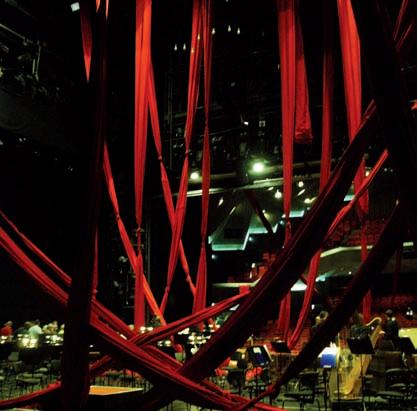 Die Uraufführungs-Bühne für Ethel Smyths „The Prison“ wird von einem Schicksalsgeflecht aus 1000 Metern Stoff dominiert.