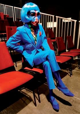 Auf der Publikumstribüne im Theatersaal des Alten Kinos Franklin sind schon einige Plätze besetzt. Mit feinsinnigen Accessoires ausgestattet, verblüffen die real wirkenden „Humanimal“-Figuren.