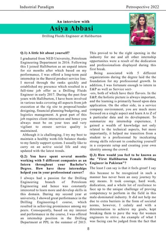 Asiya Abbasi Drilling Fluids Engineer at Haliburton Q.1) A little bit about yourself?