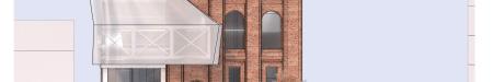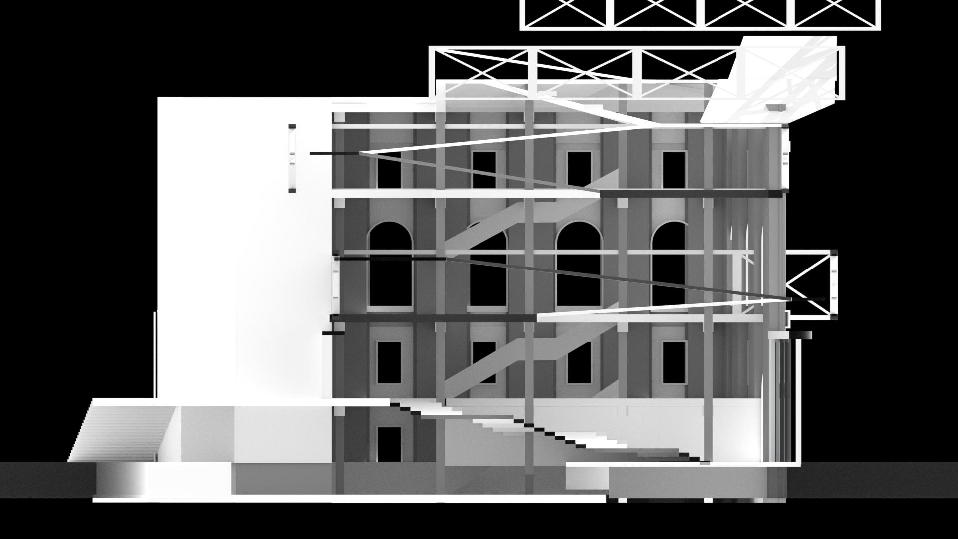 Library Shed or THE SHED CLOUD - a renovated and extended vertically, an early twentieth-century Washington Heights Library that was built as part of The New York Public Library system. The audio-visual center program is designed to expand their private educational operations as well as the public interface - providing these institutions with the civic potential as community learning spaces for content generation and viewing. The project’s design philosophy represents a stark contrast between existing and new structures, incorporating a transparent oblique parasite that attaches to an existing structure. This design element serves the building’s fundamental need for natural light, connecting visitors with reading. “Library Shed” combines old and new, creating a bright and airy atmosphere.