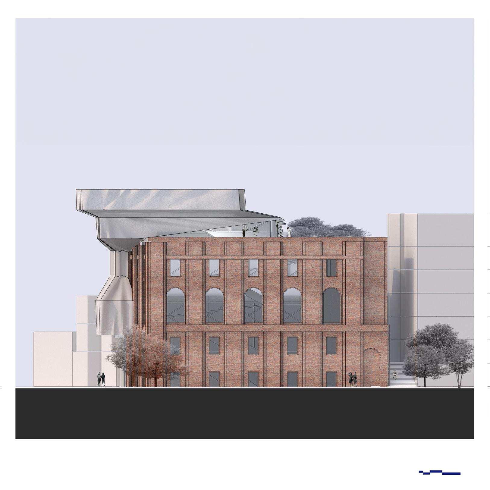 Anchored in the existing social fabric of the area, the preserved basketball court underscores a commitment to honoring local traditions while the addition of classrooms, offices, and dining spaces expands the site’s role into a multifunctional hub for education, collaboration, and communal engagement. Through its thoughtful integration of form, materiality, and programmatic versatility, NY Grand Market transcends conventional typologies, offering a nuanced dialogue between past and present, permanence and adaptability, and structure and environment.