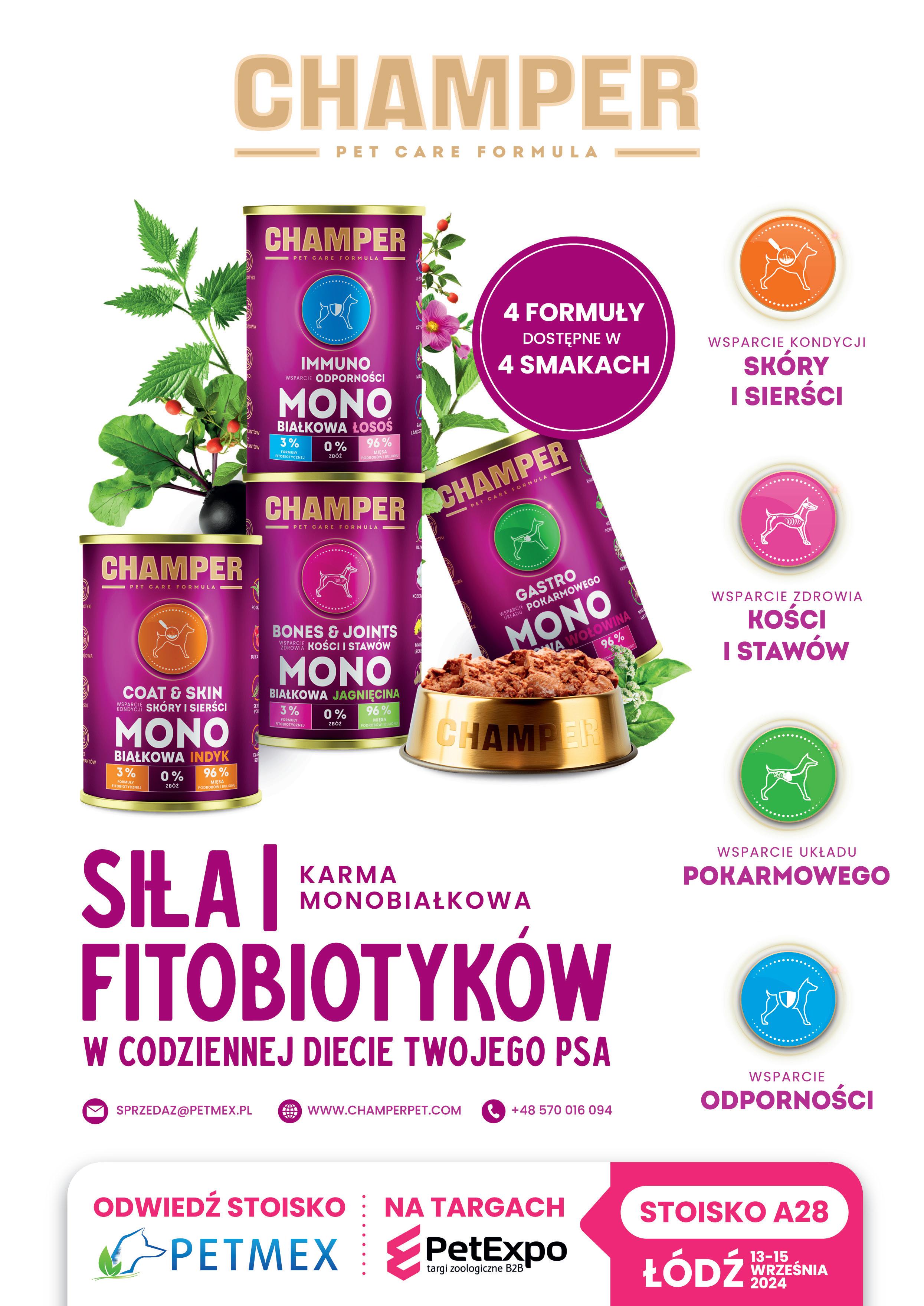 Petmex, jeden z liderów wśród producentów przysmaków dla psów w Polsce, obchodzi w tym roku swoje 10-lecie! Na stoisku Petmex, obok dobrze znanych i cenionych gryzaków, pojawią się także nowości produktowe pod atrakcyjnymi markami. Champer Pet Care Formula to innowacyjna karma oparta na funkcjonalnej formule fitobiotycznej. Litty Kitty oferuje bentonitowe i silikatowe żwirki dla kotów, w designerskim opakowaniu. Petmex stawia nie tylko na szeroką ofertę produktową, ale również na bezpieczeństwo i najwyższą jakość oferowanych produktów, zapewniając pełne zadowolenie swoim klientom.