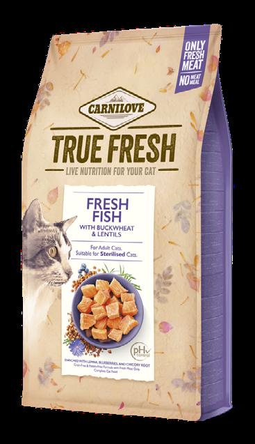 • Wysoka zawartość dehydratyzowanego mięsa (kurczak, łosoś).
