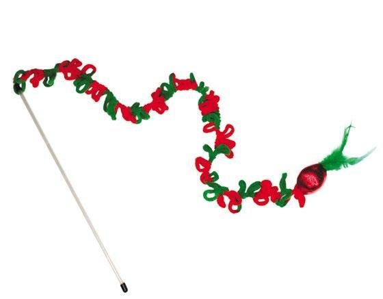 The extra-long teaser from KONG features soft yarn rings in festive colours to satisfy hunt and capture instincts. On the end of the chunky yarn rings is a shiny ball with feathers to give additional visual stimulation for your cat.