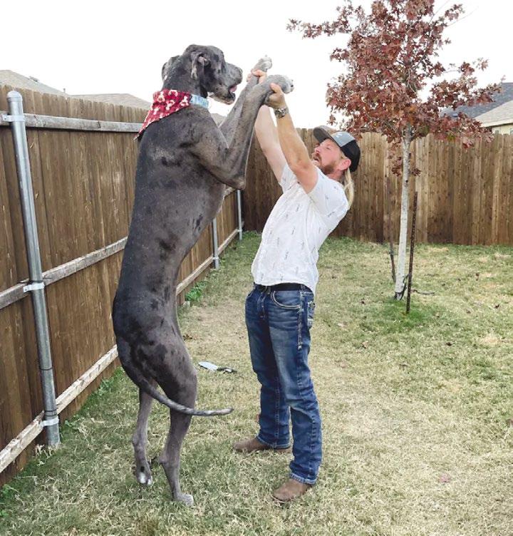 Guinness World Records has declared 2½-year-old Zeus the tallest dog in the world at 3 feet, 5.18 inches. On his hind legs, the Great Dane stands more than 7 feet tall and weighs about 200 pounds.