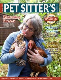 Publication of any article or advertisement should not be deemed an endorsement of the opinions expressed or products advertised. Pet Sitter’s World is a trademark of PSI.