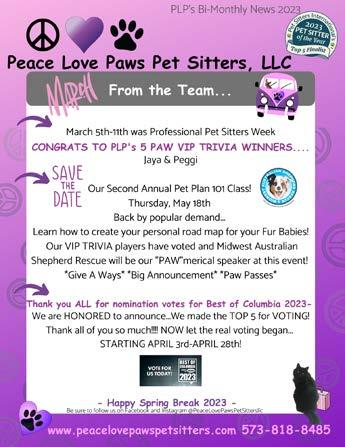 ©Copyright 2023 by Pet Sitters International Inc. All rights reserved. Pet Sitter’s World is the official publication of Pet Sitters International, Inc. (PSI). Printed in the USA.