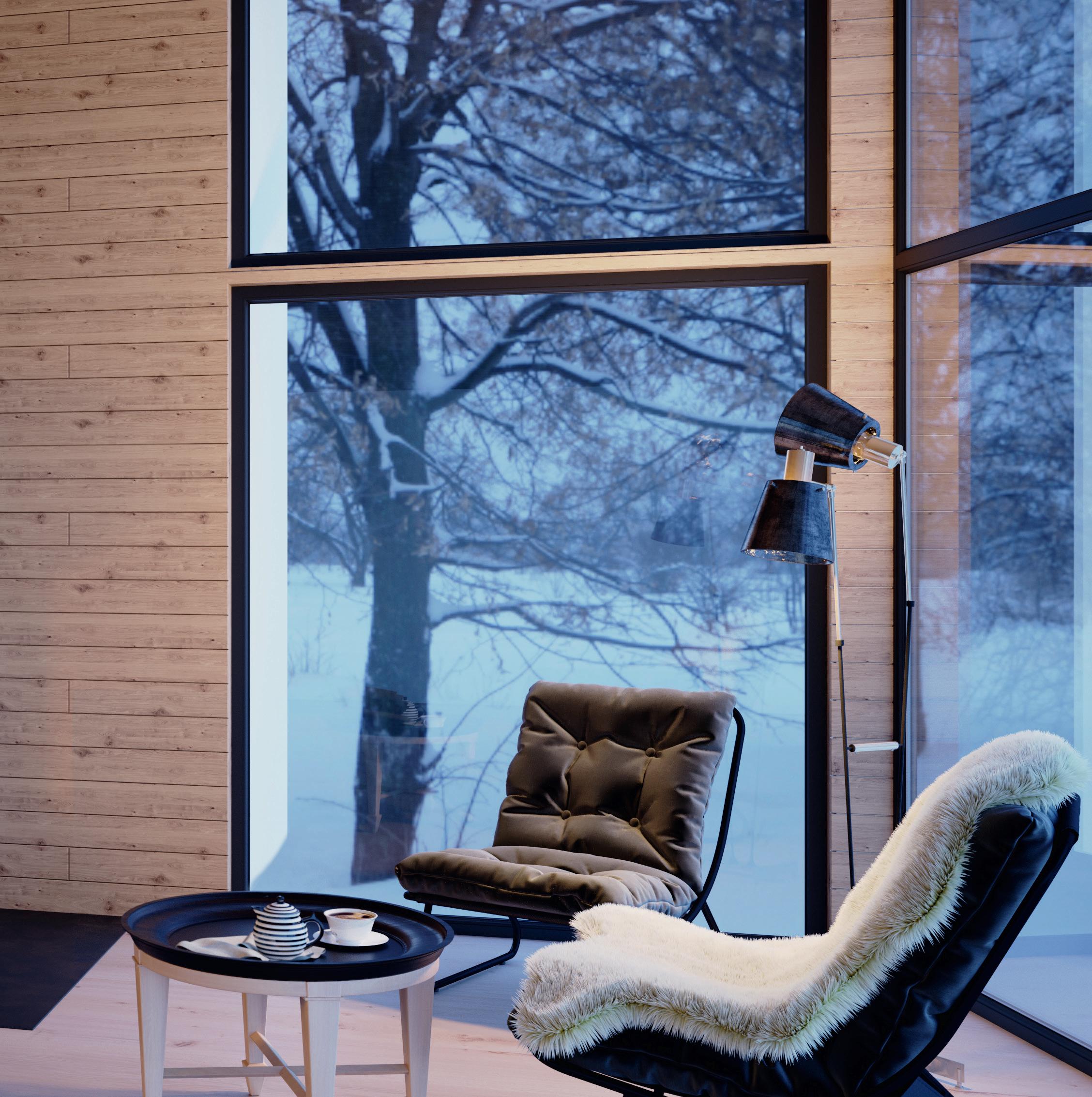 gir hjørnemodellen Visio 2 lys og varme til store deler av rommet. Visio oser av ekslusivitet med sin hevedør og minimalistiske ramme av rustfritt stål og trehåndtak.