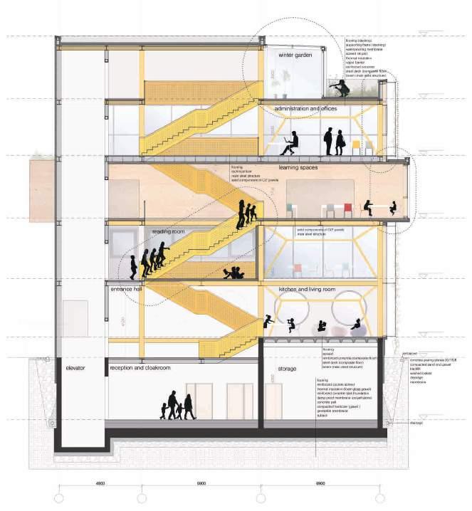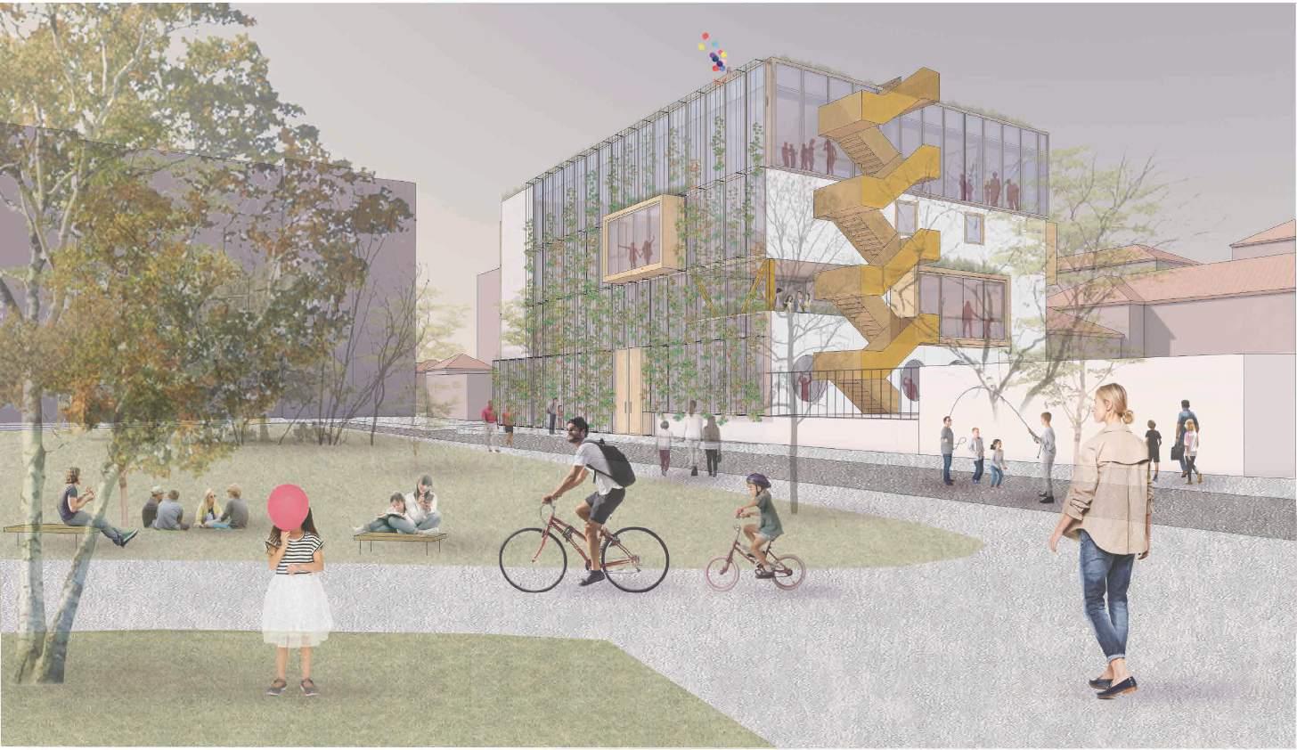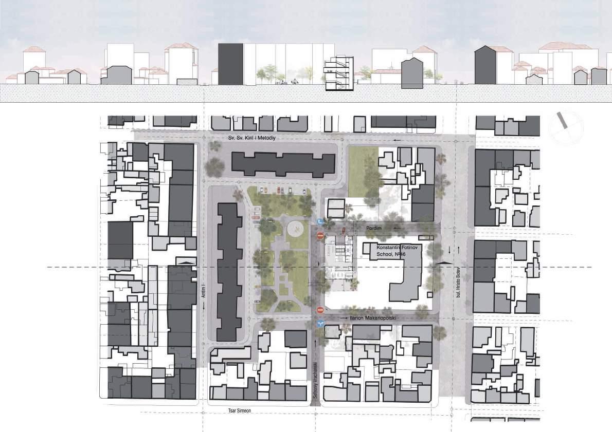 The proposal is a logical step for the understanding and cultivation of a public space that is wanted and recognized by the people in the area. The idea of a modern teaching/learning cenre plays a key role as a generator of events which is important for developing the potential of such area. It can be understood also as a new configuration, a new model for the space between apartment buildings, integrating residence, green space and public function, which is a unique case in this central part of Sofia.