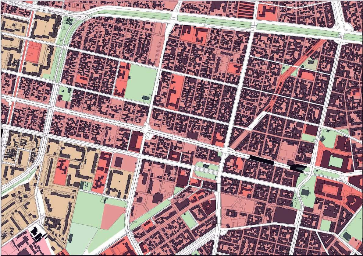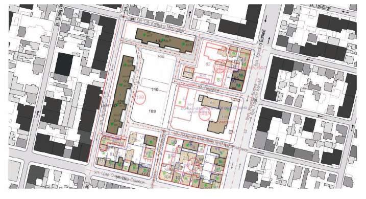 Characteristic of the area is the dense urban structure, determined by the pulsations of solid and void within rectangular neighborhoods, locked between four streets. The spaces between buildings in terms of understanding and scale are seen rather in the role of courtyards used mainly by the inhabitants of the respective neighborhood.