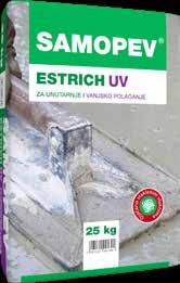 25 kg, gotovi suhi cementni estrih, za unutarnju i vanjsku primjenu, ojačan vlaknima i lagan za obradu, mogućnost zaglađivanja površine, potrošnja cca 20 kg/m2 po cm debljine 290425