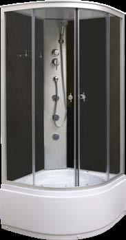 Hidromasažna tuš kabina AMELIA 90 x 90 x 215 cm, polukružna, aluminijski profili, kaljeno staklo 4 mm, pozadina tuš kabine od crnog kaljenog