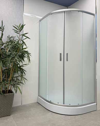 Tuš kabina s kadom PULSE polukružna, kaljeno mutno staklo 4 mm, kada ABS 12 cm, fiksna obloga, mat srebrni aluminijski profili 340430, 31