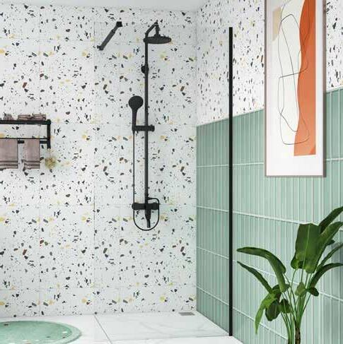 Steklena stena za prho STIL BLACK kaljeno prozorno steklo debeline 8 mm, kromiran aluminijasti profil, nastavljivi stenski nosilec 70–120 cm 351476 - 78, 80