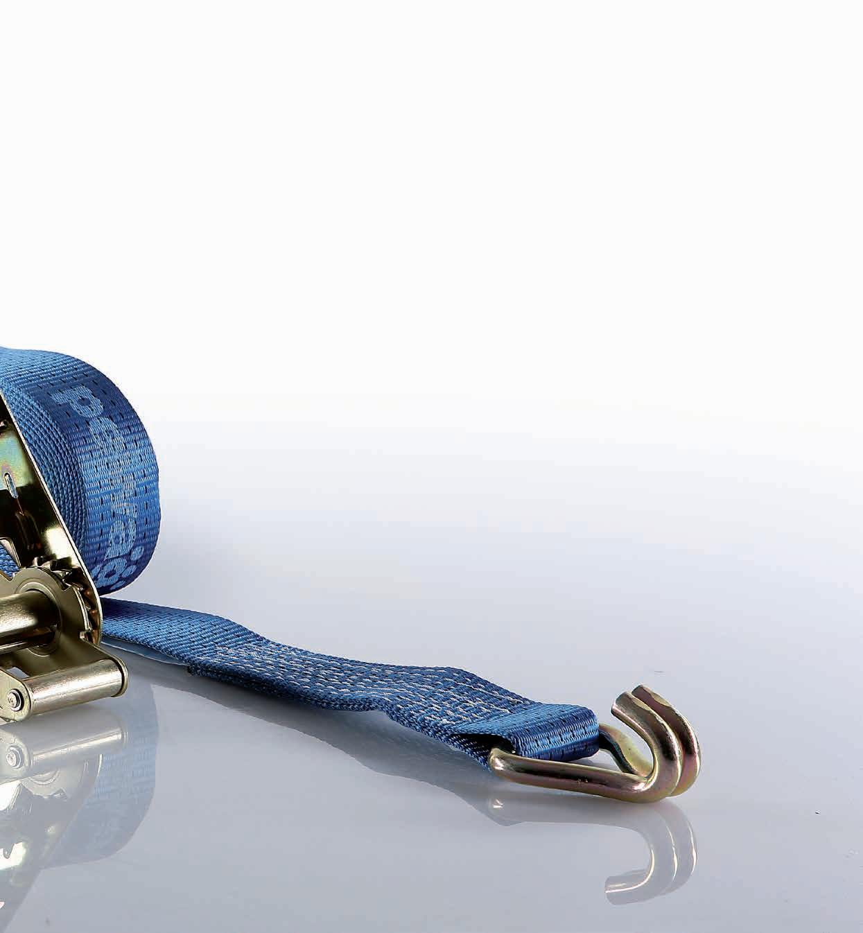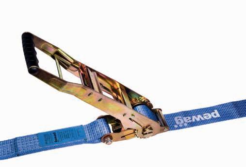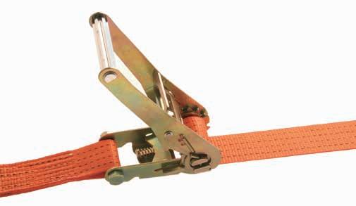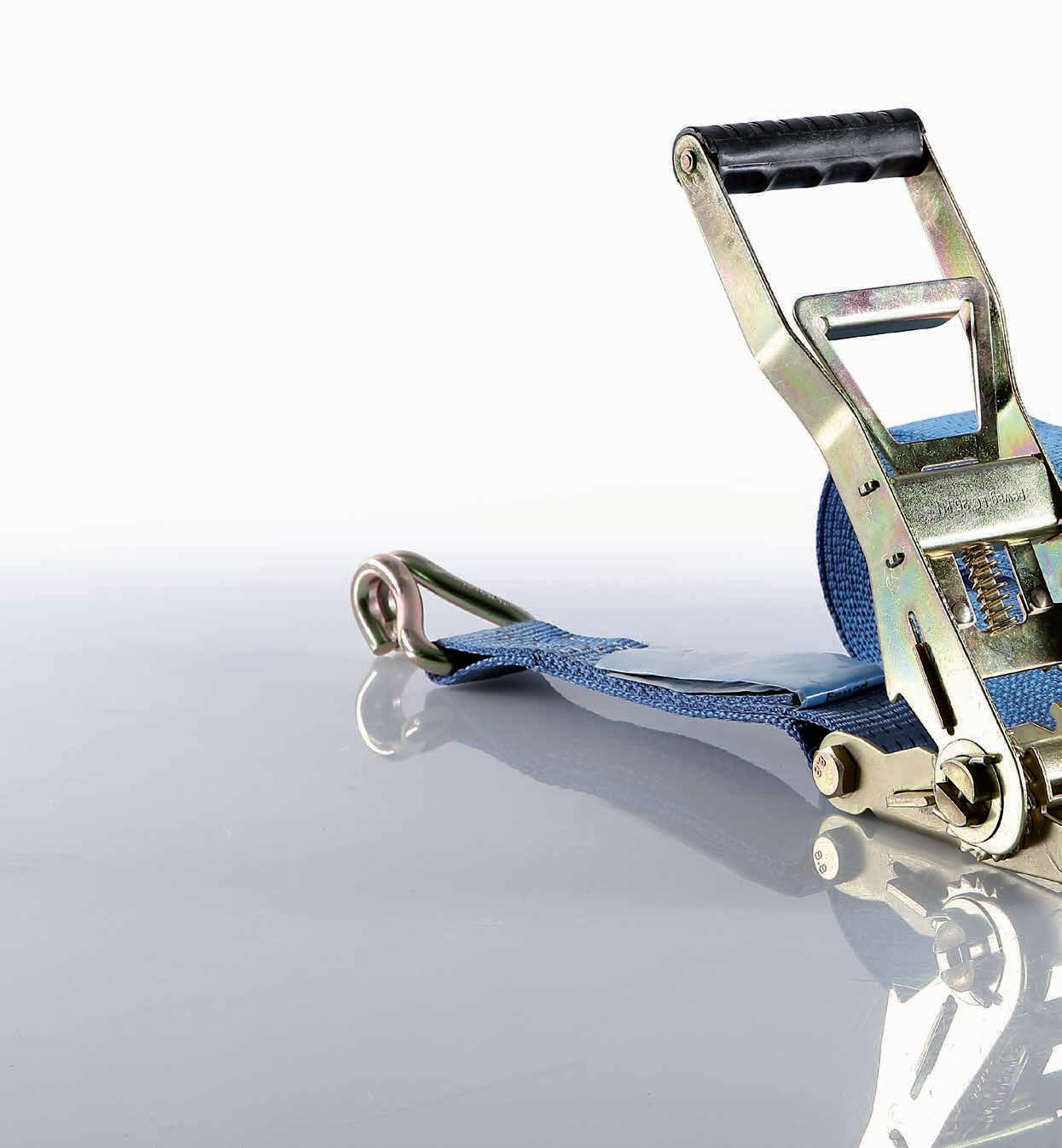 Pay attention to overhead lines during loading and unloading. Remove possible lifting equipment before starting the lashing process. The maximum hand force of 50 daN for tightening the tension device must only be applied manually. Do not use mechanical devices such as rods or levers. Use sufficient edge protectors or edge wear pads. Please take into consideration that lashing straps could swing and rub due to winds. During transport, check the tension of the lashing strap repeatedly. Increasing temperatures can lead to a decreasing of the tension force in the lashing strap. Before opening the lashing strap, the load must be checked to ensure that it is properly supported and stable without the lashing system. It must also be guaranteed that there are no people in danger because of the load falling or toppling over. If necessary, assemble possible lifting equipment on the load before the transport to avoid falling off or toppling down. Special ratchets which allow a gradual loosing of the tension force are also very helpful in these cases. Before unloading, loose the lashing straps in such a way that the load stays on itself.