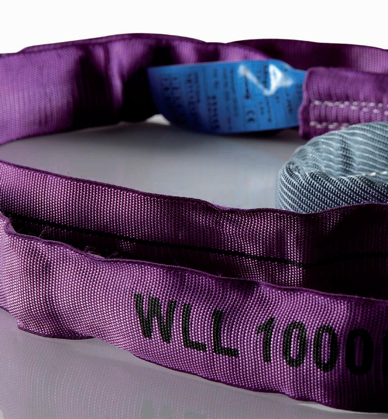• Visible core or damaged sheath of the round sling