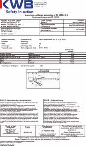 – corresponds to 4 times the load capacity Breaking Elongation: min. 20 % Bending acc. to EN 818-2: 0.8 x nominal diameter Permissible Working Temperature: Sun Alloy Chain SUN max. 200 °C Components max. 200 °C Grade marking: Sun Alloy Chain SUN 12 Components 12 Surface: Sun Alloy Chain SUN Bordeaux Violet painted Components Bordeaux Violet powder coated Working Load Tag: All the required data is shown on the working load tag. Note: Working load tags should only be assembled acc. EN 818-4 and by competent persons. Working load tags should be used, solely when the respective chain & KWB components are assembled in the chain sling. Should alternative Working load limits arise in the chain sling through the use of special parts, the tags are impermissible. Disregard of these instructions can lead to material damage and personal injury. KWB will not assume liability.