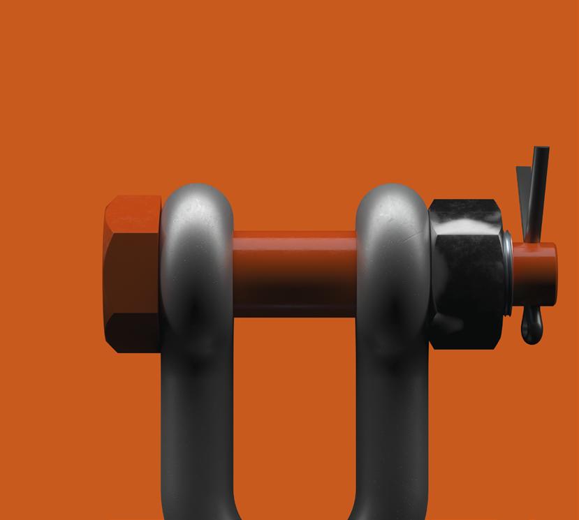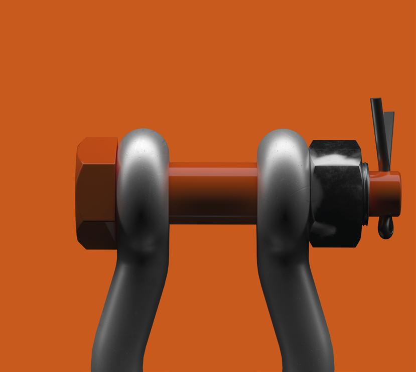 Achten Sie bei der Verwendung des Schäkels darauf, dass der Schäkel die Last korrekt trägt, d. h. entlang der Achse der Bügel-Mittellinie. Vermeiden Sie den Einsatz des Schäkels in Anwendungen, bei denen sich der Bolzen durch Bewegungen – beispielsweise der Last oder des Seils – drehen und dadurch unbeabsichtigt herauslösen könnte. Ist eine Bewegung der Last unvermeidbar, soll der Schäkel über einen längeren Zeitraum montiert bleiben oder wird eine besonders hohe Bolzensicherung benötigt, ist ein Schäkel mit Bolzen, Mutter und Sicherungssplint zu verwenden.