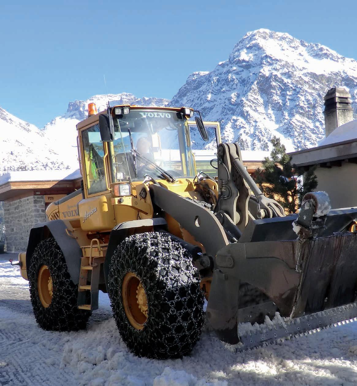 A great diversity of machines can be chained such as loaders, dozers, graders, dump and service trucks. For seasonal use on ice and snow as well as for continuous use on slippery and muddy ground.
