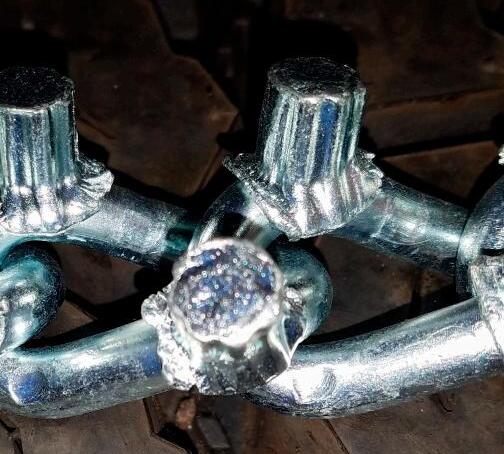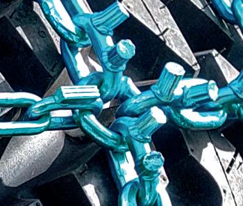 •8.5mm net chain is made with 10.5mm star studs, welded wear-bars, and welded rings.