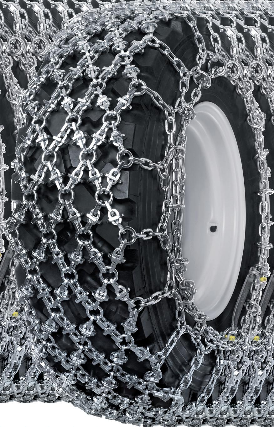 The robust pewag power net is ideal for standard applications on tractors and other equipment. Whether clearing snow or traveling off-road and in the forest. The welded on wear elements ensure optimum grip on any surface. Thanks to an intuitive tire fit, the chain is quickly mounted and ready for use.
