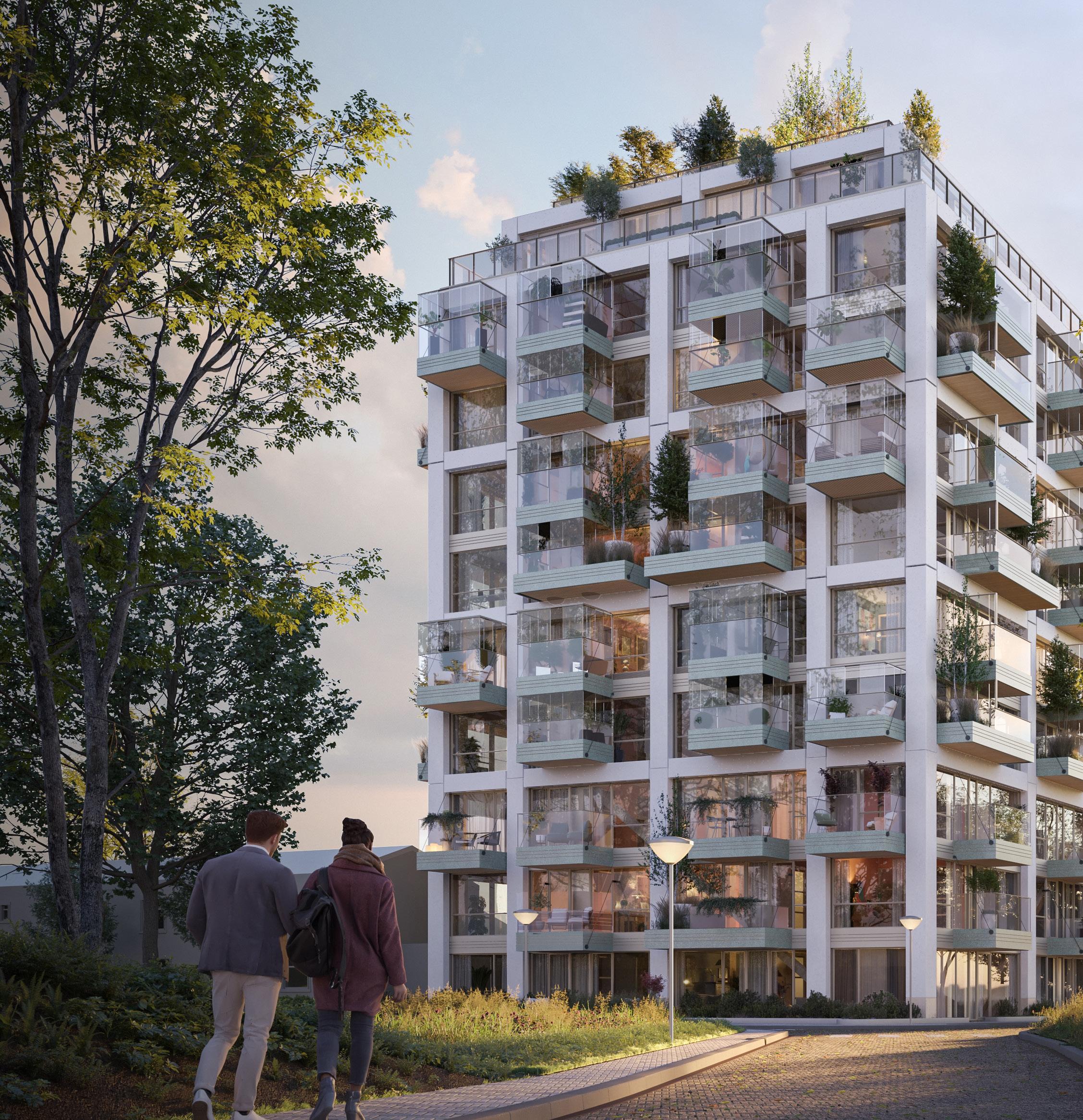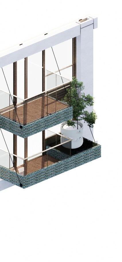 The next step was the sustainability aspect of the project, which by collaboration with specialists in different fields we succeed to adopt a 360° sustainable approach. This wooden building is energy-neutral, climateadaptive, and nature-inclusive - from balcony farming to insect habitation, balustrades with solar panels, and so on.
