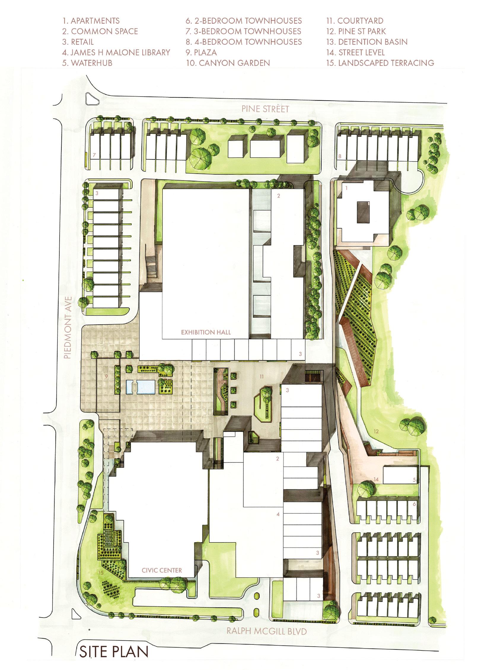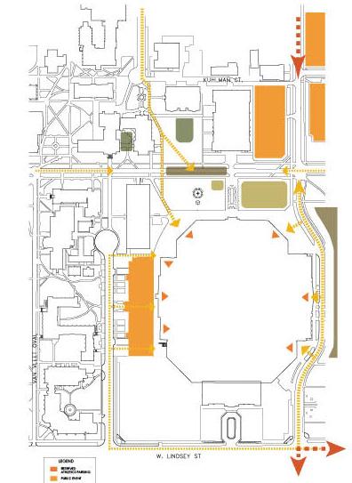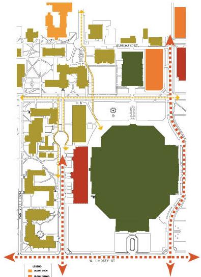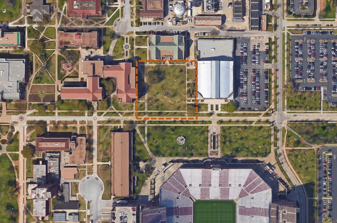 This project is the re-design of a site at the University of Oklahoma to create a multi-use space for students and game-day visitors. The space will serve as a place for students to study or eat lunch, as well as a flexible location for events such as cookouts or food trucks. As a main entrance into campus on a game day or weekday, the site will also better accommodate pedestrian traffic based on current circulation patterns.