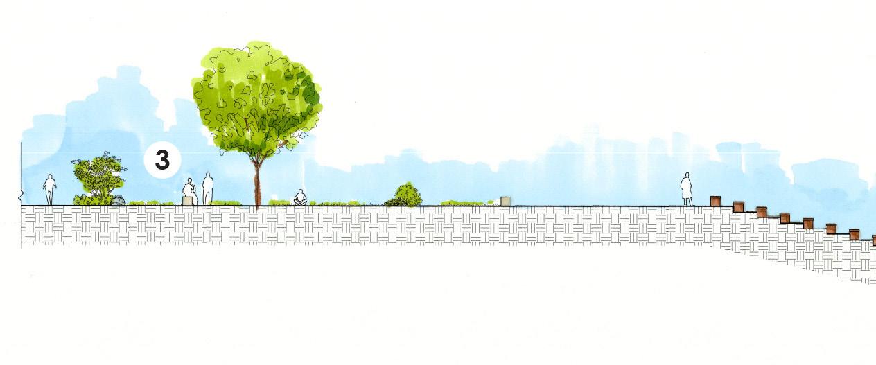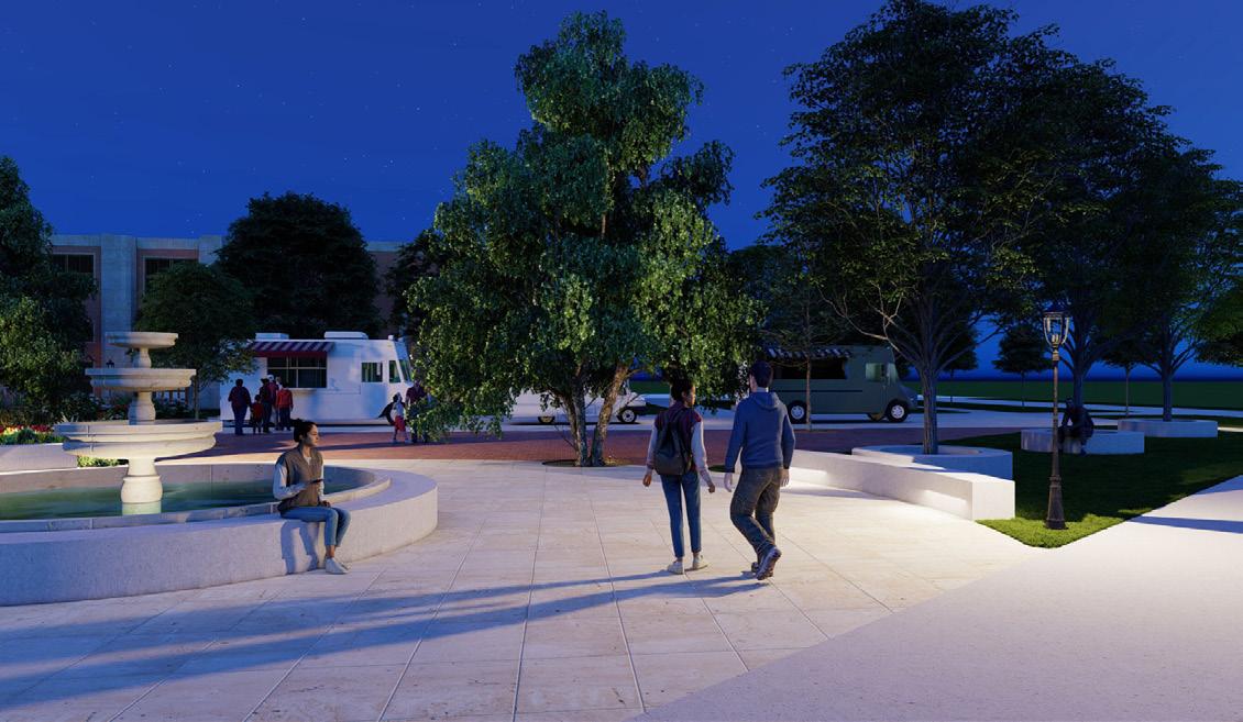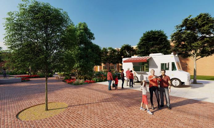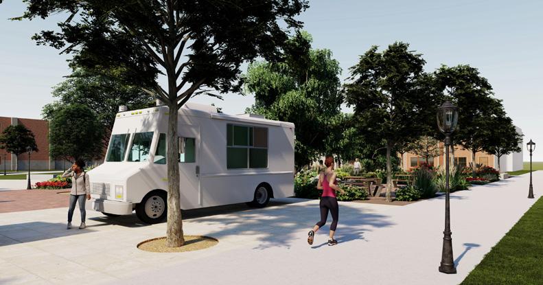 i. Create a plaza for larger gatherings of people or food trucks away from the main pedestrian path.