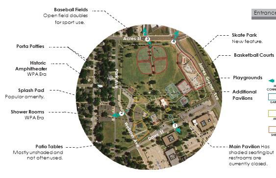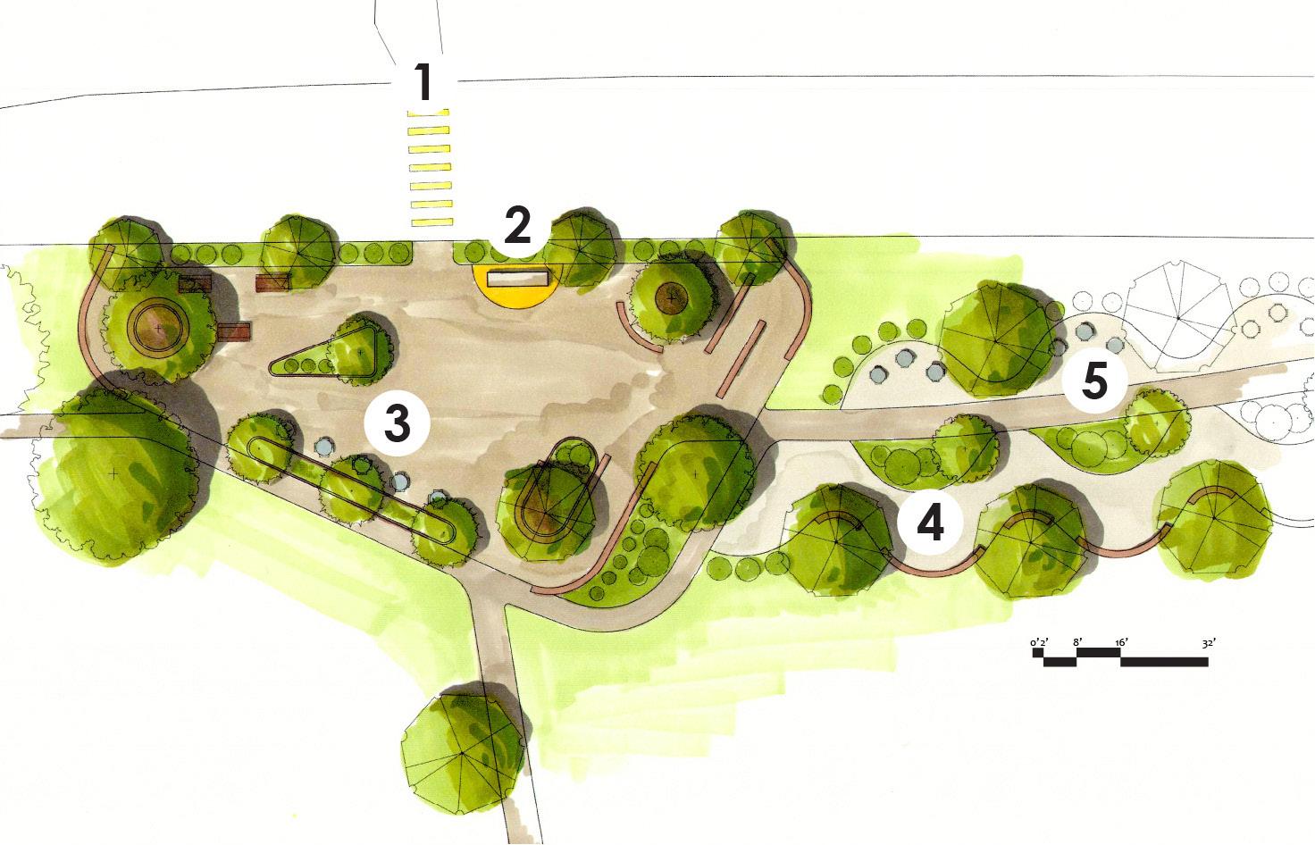 III. Preserve & reuse existing structures: WPA features and splash pad.