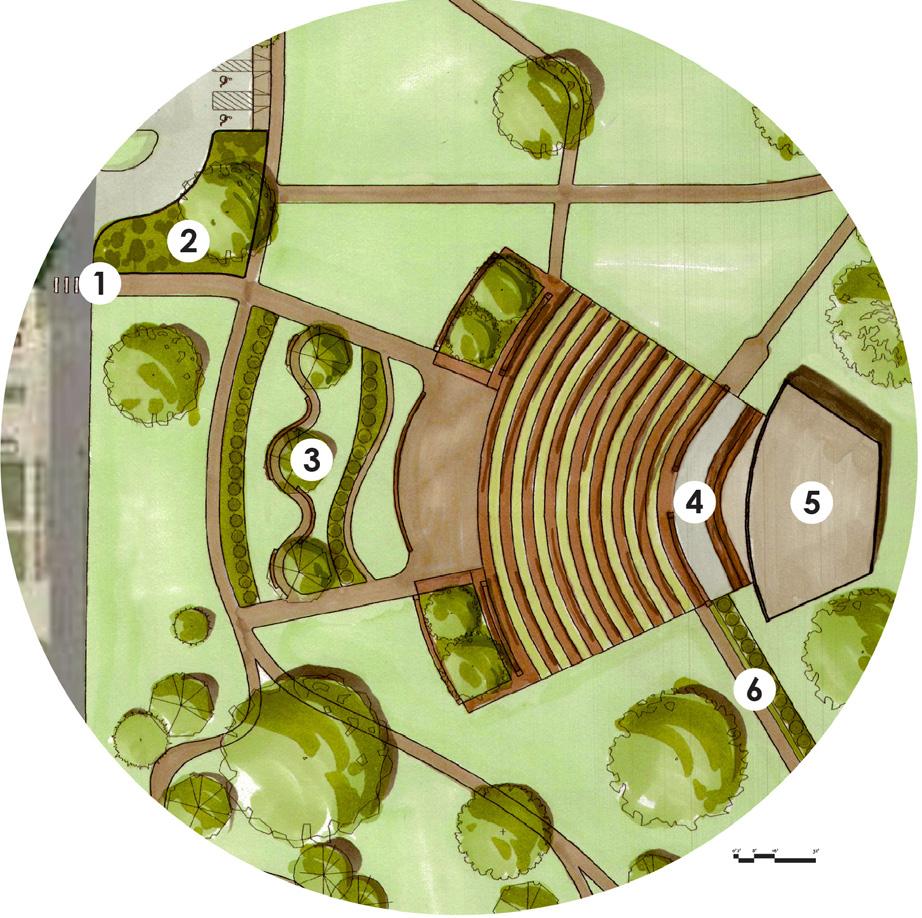 • Activate a central gathering place: a place to eat & newly built bathrooms.